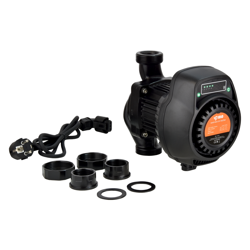 W zestawie z pompą znajduje się komplet śrubunków i oraz adapter do przewodu zasilającego.