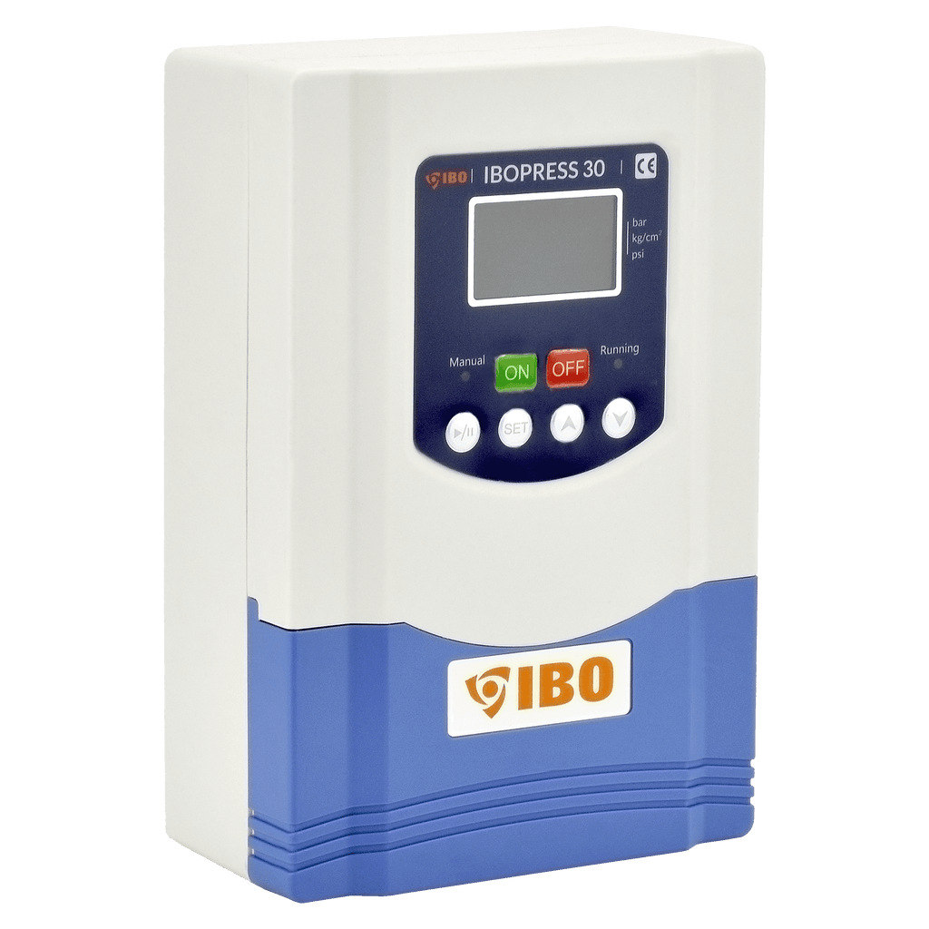 Ibopress 30 ist mit einem zusätzlichen Kabel mit einem Drucksensor ausgestattet und ist für die Steuerung des Betriebs von drei Phasenpumpen ausgelegt.