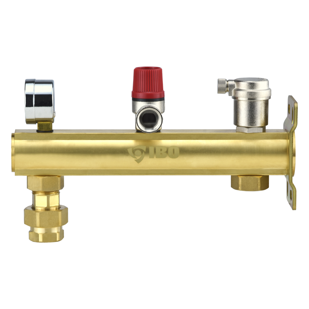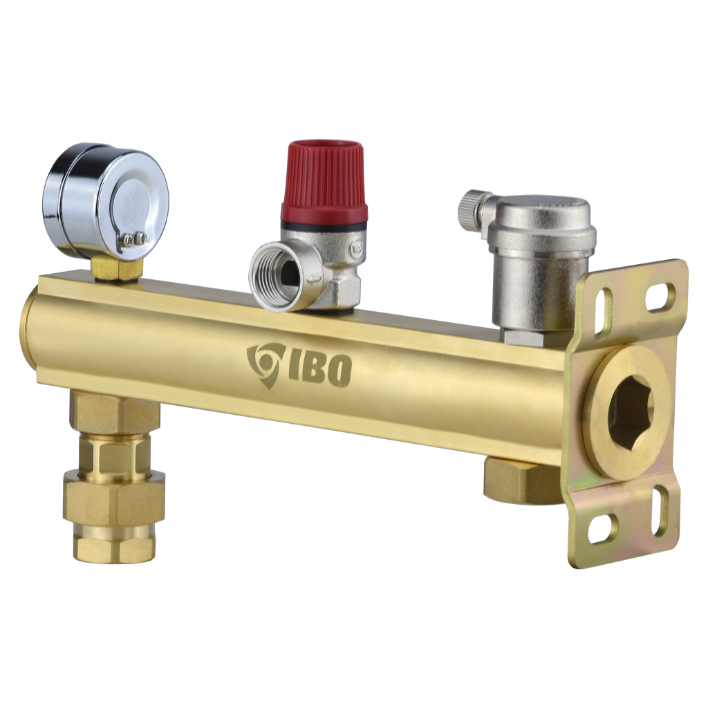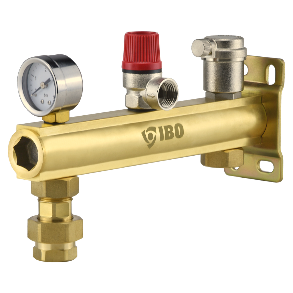 Grupa bezpieczeństwa IBO MGB 3 bar / MGB 6 bar służy do kontroli ciśnienia oraz zabezpieczenia instalacji grzewczej przed nadmiernym wzrostem ciśnienia poprzez zastosowanie zaworu bezpieczeństwa, manometru i odpowietrznika automatycznego, współpracując jednocześnie z naczyniem przeponowym.