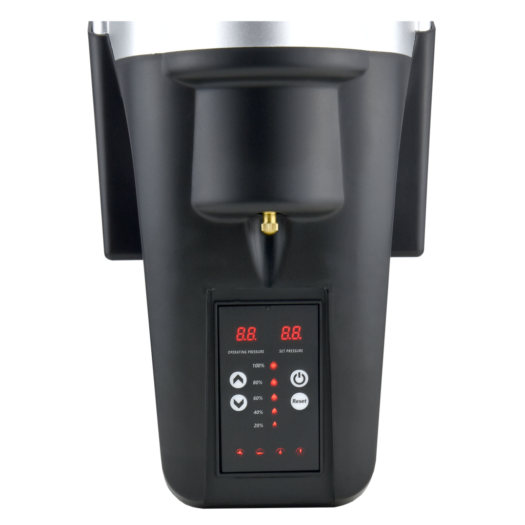 Panel umożliwia ustawienie ciśnienia zadawanego dwoma przyciskami: zwiększania i zmniejszania. Wyświetlane są jednocześnie wartości aktualne i zadane. Diody LED sygnalizują: pracę pompy, wyciek, niedobór wody, przeciążenie, temperaturę oraz awarie napięcia. Funkcje obejmują m.in. reset, test, przywracanie ustawień fabrycznych oraz sprawdzanie temperatury medium.